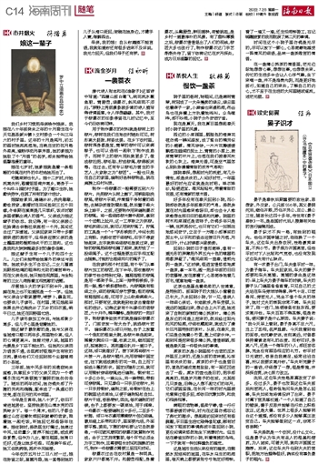 娘这辈子最欣慰的是,她与父亲在省城海口糊口两年多,那里物价高,但人的心情更高兴。她曾对旁人说,城里的光景是乡下总不能比的。但她和父亲因为语言不通,去医病时很难产生有效的交流,最终他们又迁回到那个尘嚣喧闹的小县城。