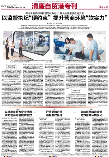 ■ 本报记者 尤梦瑜 通讯员 赵雅婧建设勇于创新、充满活力的自由贸易港,推动有效市场和有为政府更好结合,打造国内一流的营商环境,亲而有度、清而有为的政商关系不可或缺。