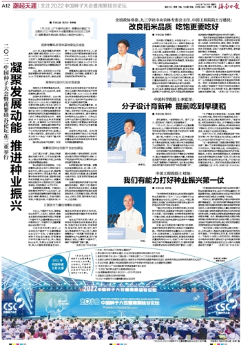 7月28日,2022中国种子大会暨南繁硅谷论坛在三亚开幕。 本版图片均由本报记者 武威 摄