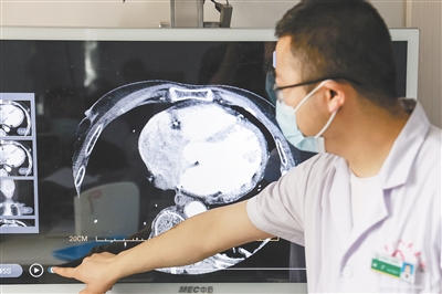 贵州省龙里县人民医院医生通过远程诊断系统查看患者的医学影像资料。新华社发