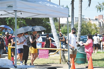 7月27日,人们在美国加利福尼亚州洛杉矶排队接种猴痘疫苗。新华社/法新
