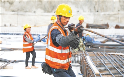 8月1日,在海口五源河公寓三期K区项目建设现场,来自云南文山的工人徐金华和妻子陆贞连搬运钢筋。在这里,他们夫妻俩一天能拿到超600元的工资。