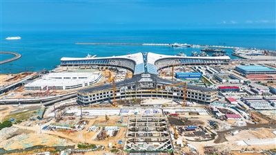 近日,主体结构建设完工的海口新海滚装码头客运综合枢纽项目,正进行玻璃幕墙安装以及金属屋面铺设等施工,预计今年底竣工。项目建成后将成为全国规模最大港口客滚综合枢纽。本报记者 张茂 实习生 吴渝 图/文