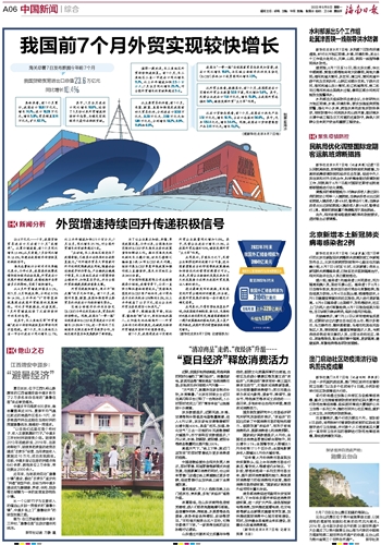 值得一提的是,长三角地区外贸持续快速恢复。前7个月,长三角地区三省一市进出口同比增长11.7%,比上半年增速加快2.5个百分点;7月当月同比增长25.7%,对全国外贸增长的贡献率超过5成。