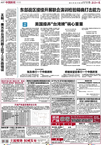 东部战区空军连续出动预警机、轰炸机、干扰机、歼轰机、歼击机等多型多批战机,继续在台岛周边空域成体系实施联合侦察、制空作战、对地突击、支援掩护等实战化演训。在海空体系支援下,空中打击兵力协同远箱火、常规导弹部队,区分多个方向,对预定目标实施联合精确打击演练;多支轰炸机编队按照预设航线,南北双向穿越台湾海峡;数架歼击机联合海上驱护舰开展联合演训。