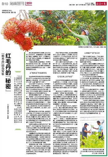 但彼时全国农业主要任务还在于“填饱肚子”,作为“农副产品”的红毛丹并未引起农业主管部门和农民的重视,截至1995年,保亭仅保留了用于科研试验400亩左右的红毛丹。