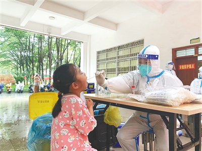 湖南援琼医疗队在进行核酸采样。 本报记者 张文君 摄