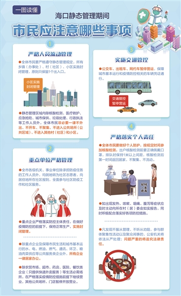 静态管理期间,对城区全域实施封闭管理,每个小区原则只保留1个出入口。静态管理区域内除核酸检测、医疗救护、应急抢险、城市保供、垃圾处理、行政执法等工作人员外,全体市民非必要一律不外出、不开车、不聚集、不进入公共场所(公共区域)、不进入其他社区(村组)和小区。有急危重症患者、孕产妇等紧急就医需求的,经社区(村组)同意后,方可外出。