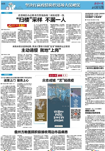 《文明社区静态管理人员明细表》《核酸结果阳性人员明细表》《密接人员明细表》——这是近日奋战在三亚市崖州区文明社区的省政府办公厅志愿服务队队员工作中每天都要接触的三张表格。该志愿服务队探索的“三张表格”精准管理工作机制,确保了核酸信息采集不漏一户不落一人。