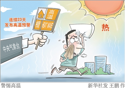 中央气象台首席预报员陈涛介绍,7月下旬以来,长江中下游地区等地出现范围较大、强度较强的高温天气。8月12日,中央气象台发布今年首个高温红色预警;截至13日,中央气象台已连续24天发布高温预警。