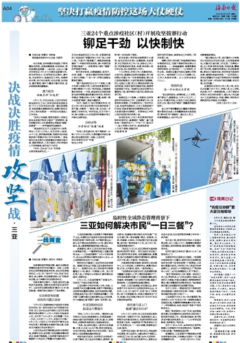“每支‘物资保供小分队’配备一名社区工作人员,带领队员上门为社区居民介绍线上买菜的几大渠道,并登记孤寡老人等特殊群体的需求,竭力保障居民生活物资供应。”省纪委监委支援三亚志愿服务队成员曹子杭说。