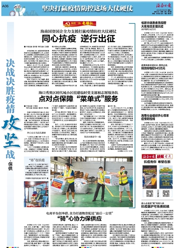 当前,海南生活必需品储备充足、价格总体平稳,确保“最后一公里”通畅是保供工作的重点之一。一些电商平台积极发挥优势,创新举措,通过人力支援、服务优化等多种方式,畅通我省部分市县生活物资配送“最后一公里”,更好地服务群众。