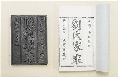 海南省图书馆地方文献与古籍部收藏的《刘氏家乘》雕版和再印件。