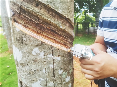 电动割胶刀成为胶农好帮手。 本版图片除署名外由海南日报记者曾毓慧摄