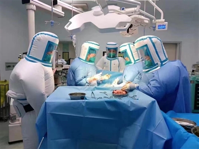 钱沁佳和同事们走进手术室时,穿戴防护服、护目镜、三层手套及沉重的充氧设备。这身严严实实的穿戴,让她们的手指灵活度降低。钱沁佳静下心来,领着大家认真完成每一个步骤。最终,仅用时6分钟就把胎儿取出。下午1点10分,手术顺利结束。