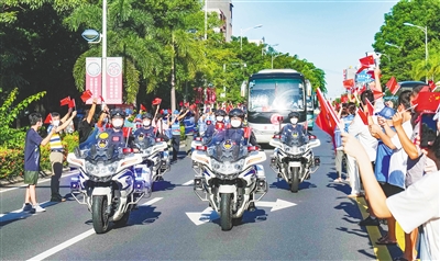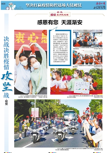 8月29日,儋州为江苏省援琼医疗队核酸采样队扬州队和四川省援儋医疗队举行欢送仪式,市民夹道欢送,向医疗队员致以崇高敬意和真挚感谢。 本报记者 陈元才 摄
