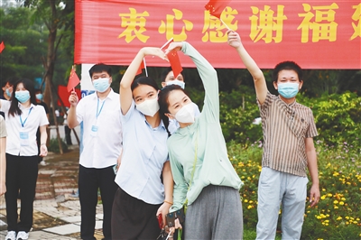 8月29日,乐东黎族自治县为福建支援乐东医疗队举行了简约热烈的欢送会。图为现场群众比心送别医疗队。 本报记者 韦茂金 摄