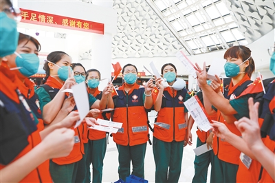 海南本轮疫情发生以来,来自20个省(区、市)的2万余名医护人员义无反顾逆行,奔赴琼岛抗疫战场,与海南同行一起开展核酸检测,救治新冠患者,展现了“白衣天使”的使命担当,体现出“一方有难、八方支援”的人间大爱。近日,多支援琼医疗队完成使命陆续返程,临别时分,海南各地群众纷纷自发走上街头夹道相送,以不同的形式,表达出心底那一句“感谢您,来自五湖四海的白衣天使!”