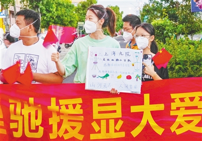 8月30日,儋州市民欢送上海九院支援海南儋州医疗队返程。图为市民展示手绘画表达对医疗队的感谢。本报记者 陈元才 摄