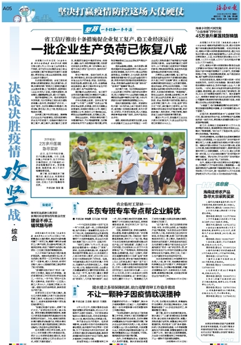 据了解,面对今年疫情的复杂性,陵水建立了“三套”疫情防控应急保障机制:建立信息共享通报机制、南繁人员物资通行证机制、南繁建立单位闭环管理机制,同时落实“三项”具体措施:科研人员进陵绿色通道、今冬明春南繁基地生产资料保障、南繁配套服务区复工复产工作。陵水通过这些保障措施,为全县今年的南繁育种工作保驾护航,不让一颗种子因疫情耽误播种。