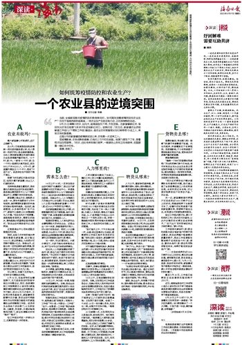 在镇内农田施肥等问题上,工作组首先考虑从本镇低风险区动员村民,以封闭管理的形式,协助中高风险区农户打理农田。