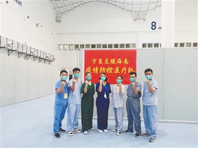 宁夏援琼医疗队部分队员为病人打气加油。