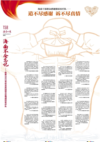在20天时间里,我们看到了江苏援琼医疗队全体管理人员及舱内医护人员对工作的认真负责,对细节的严格把控,对病人的爱心满满……你们的工作作风给了我内心深深的震撼,你们也将是我今后工作的楷模。你们付出了太多艰辛,辛苦了!