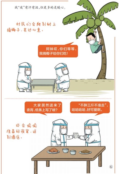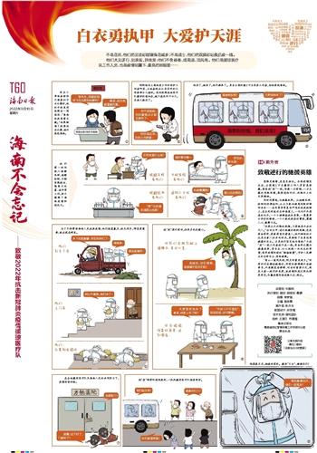 “没有从天而降的英雄,只有挺身而出的凡人。”白衣为甲、逆行驰援的孤胆英雄,也是有血有肉、有家有室的普通人,他们牺牲的不仅是与家人的共处时光,更牺牲了自身远离病毒的安全。正是他们坚定地与海南广大战“疫”一线工作者战斗在一起,用血肉之躯与病毒抗争,用专业、仁心托起一次次生的希望,筑牢疫情防控的“铜墙铁壁”,守护人民群众的生命安全、身体健康。