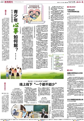 目前,青少年常见的心理问题有哪些?海南有哪些机构能提供专业的心理咨询或治疗服务?日前,海南日报教育融媒工作室“教岛主任”,特邀我省3位心理学权威专家为您解答。