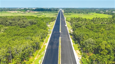 近日,航拍正进行沥青铺设的G360文临公路海口至定安路段。目前,海南各重点公路项目正在加快建设,G360文临公路等5条公路将于年内通车。本报记者 张茂 摄
