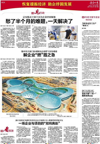 “在当天走访中,两家企业均反映存在产品积压的问题。于是高新区又派出干部分批走访园区20余家建筑类企业,收集企业诉求,同时与园区在建项目联系,了解到项目方也面临着材料运输成本上涨、供应短缺等情况。”曾佑成告诉海南日报记者。