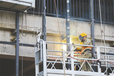 9月22日,在三亚中央商务区企业孵化基地项目施工现场,工人们正在安装楼体幕墙。 本版图片均由本报见习记者 王程龙 摄