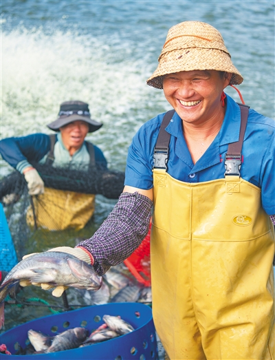 琼海市塔洋镇的农民喜捕罗非鱼。