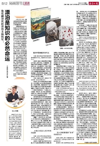 文\海南日报记者 杨道8月25日,诗人、翻译家杨铁军凭其译作《奥麦罗斯》荣获第八届鲁迅文学奖翻译奖。