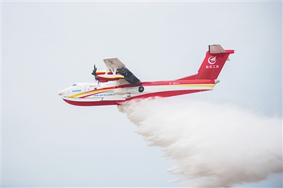 图为“鲲龙”AG600M在进行飞行投水功能演示。新华社发