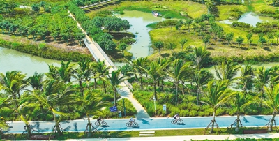 据了解,该公园位于海口江东新区起步区海边,占地44.81公顷。其结合起步区规划道路建设,分先锋阳台、森林绿丘等功能分区,设置椰林漫道、海浪凉亭、吊床乐园等休闲游览设施,目标打造“韧性海防,呼吸海岸”,将为椰城市民创造宜居优美的环境。本报记者 张茂 摄