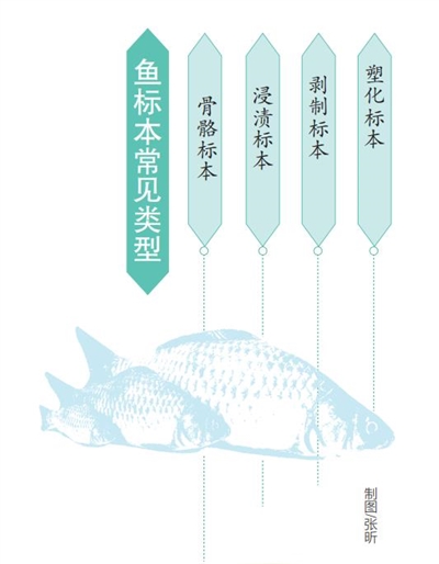 “常见的鱼类标本类型有骨骼标本、浸渍标本、剥制标本、塑化标本。”海南热带海洋学院水产与生命学院教师陈攀说,制作鱼类标本比制作哺乳动物标本更难,因为鱼皮薄、易掉鳞,所以讲究慢工出细活。