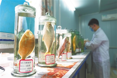 鱼标本的保存也十分讲究。陈攀介绍,以剥制标本为例,除了避免阳光直射,还要定期给其“体检”,查看标本是否变形、是否变色,并定期进行除虫、防潮处理。时间久了,还需对标本进行补色,及时保养修复才能让标本保存得更好。