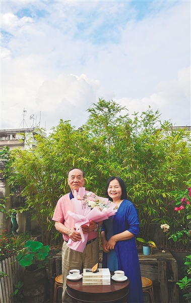 《口述海南·葩姐说》主讲人蔡葩与节目嘉宾蔡明康先生。 王才丰 摄