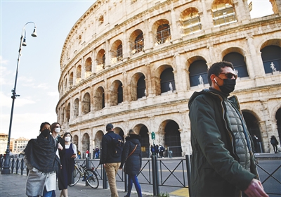 人们佩戴口罩走过意大利罗马斗兽场(资料照片)。新华社发