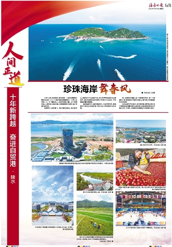 ■ 本报记者 王迎春北纬18度,珍珠海岸,海风浩荡。从高空俯瞰陵水黎族自治县,118.57公里的海岸线蜿蜒绵长,“三湾三岛两湖一山一水”镶嵌其上,如同珍珠般闪耀。这个海滨县城,山海相映,蓝绿交融,资源禀赋得天独厚,城乡发展日新月异。
