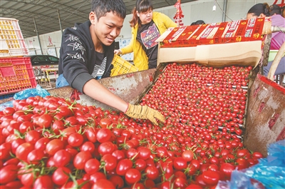 种植户通过机器分拣陵水圣女果。陵水圣女果已获评“国家地理标志保护产品”。陵水县委宣传部供图