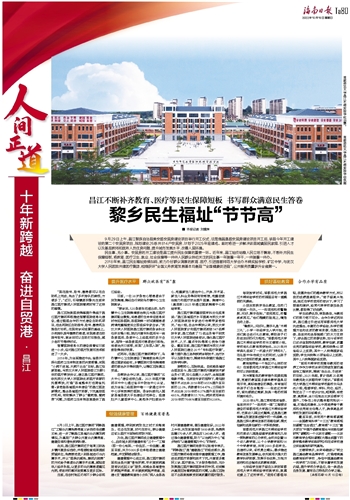 2018年来,昌江民生福祉持续加码,致力办好群众满意的教育、医疗,引进首都师范大学合办木棉实验学校、矿区中学,与武汉大学人民医院共建医疗集团,相继获评“全国义务教育发展基本均衡县”“全国健康促进县”,公共服务质量跃升全省第一。