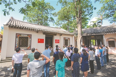 在中共琼崖第一次代表大会旧址,党员干部重温入党誓词。 本报记者 王程龙 摄