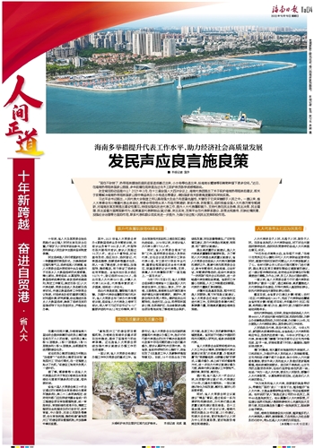 当前,海南自贸港建设如火如荼,越来越多的人大代表既深入调研、建言献策,又自觉投入为社会服务的行动中,带头扛起人大代表的为民担当。