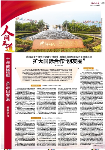 无限春风海上来。2022年是党的二十大和省第八次党代会召开之年,也是自贸港建设的“攻坚之年”。省委外办将继续把海南外事工作置于国家战略布局中审视、谋划和推动,形成“大外事”工作新格局,增强对外工作“一盘棋”整体合力,不断开创海南外事工作高质量发展新局面,更好服务中国特色大国外交,为自贸港建设提供磅礴的外事动力。