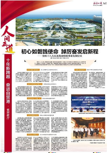 ■ 本报记者 梁振君 通讯员 符厚胜 郑冬妍党的十八大以来,海南财政在省委、省政府的坚强领导下,坚持以习近平新时代中国特色社会主义思想为指引,认真践行“以政领财、以财辅政”理念,准确把握“党委政府当家理财、财政部门做具体服务保障工作”定位,充分发挥财政资金和财税政策“双供给”作用,为海南自贸港建设和海南经济社会发展作出积极财政贡献。