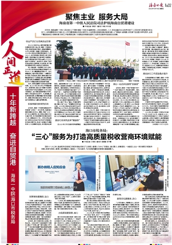 ■ 本报记者 邓海宁 通讯员 李丽 宋长清近年来,海南省第一中级人民法院(以下简称海南一中院)在省委领导,上级法院指导,人大、政协监督及社会各界支持下,以党史学习教育提升政治定力,以教育整顿纯洁干部队伍,以作风整顿建设改进纪律作风,以自贸港法院建设推动制度创新,以“查堵点、破难题、促发展”活动提升审判质效,全院干警团结奋进、锐意拼搏,各项工作取得新进展,为海南自贸港建设提供了优质司法服务和坚强法治保障。