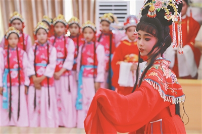 琼海市塔洋镇中心学校,教师利用课后服务时间教学生唱琼剧。 本报记者 王程龙 摄