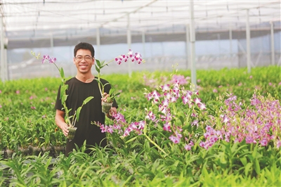 东方市板桥镇新园村兰花产业扶贫基地,工作人员护理兰花。 本版图片均由本报记者 陈元才 摄
